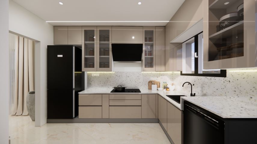 The semi-modular kitchen presented a key challenge due to limited space within the civil wall. To resolve this without compromising minimal design or functionality, a slimmer premium alternative brand was proposed. Although costlier than the original option, the client approved the change for improved fit and overall outcome.