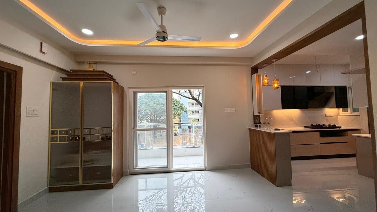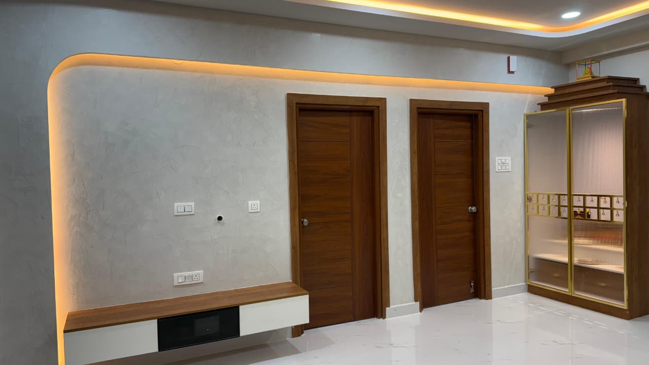 The Harsh Residence is a 3 BHK apartment located in Hyderabad, spanning 1700 square feet. This full home interior project was completed within 75 days.